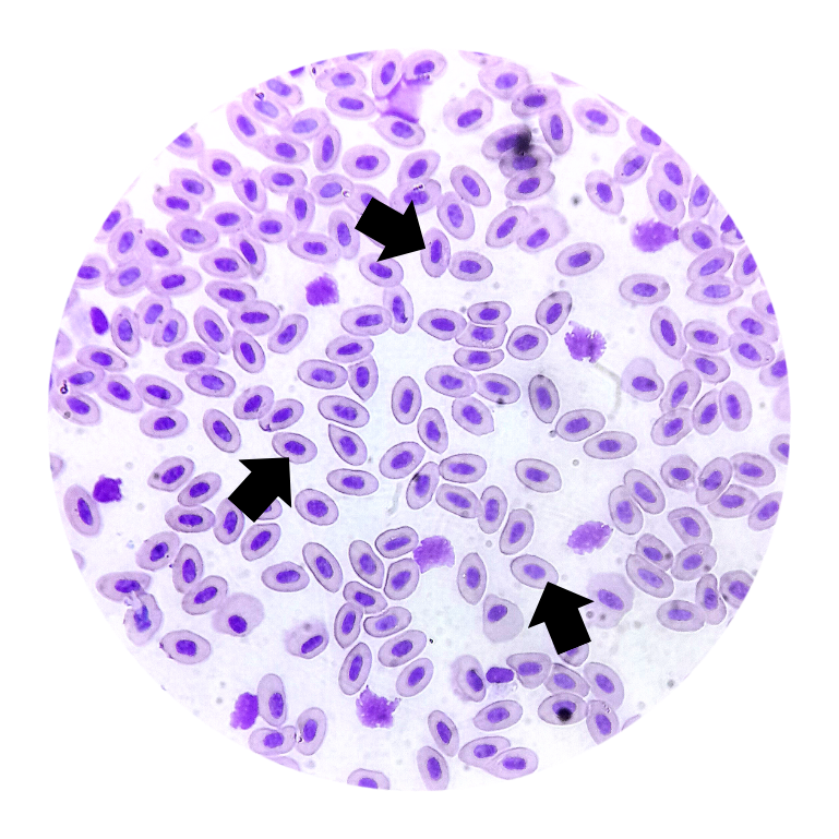 Eritrócitos e Trombócitos Eritrócitos (cão) Trombócitos (cão) Eritrócitos crenados (cão) Eritrócito (ave – galinha) Trombócitos (ave – galinha)