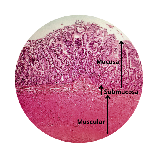 Intestino delgado - jejuno e íleo (HE-400X)