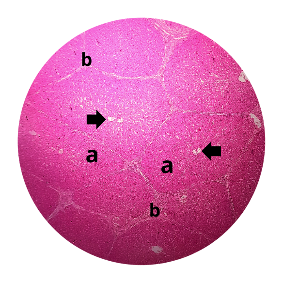 (a) lóbulo hepático com presença de hepatócitos