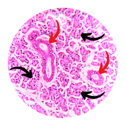(seta vermelha) ducto excretor