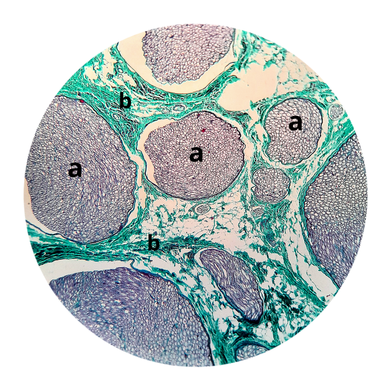 (a) fibras nervosas com bainha de mielina