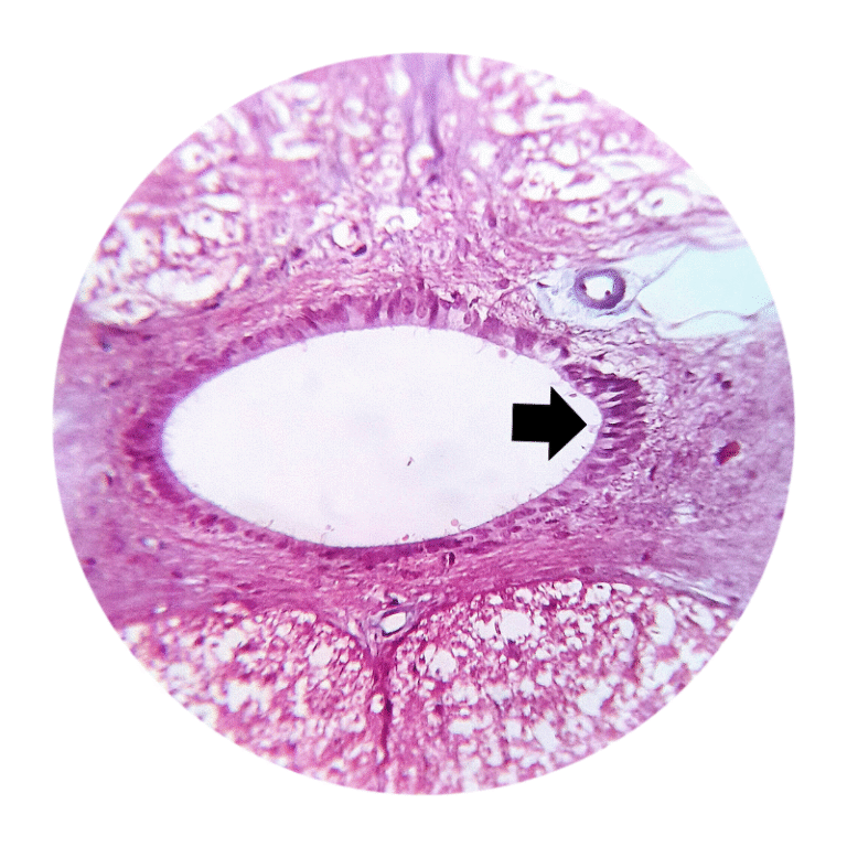 (seta) canal central é revestido por células ependimarias