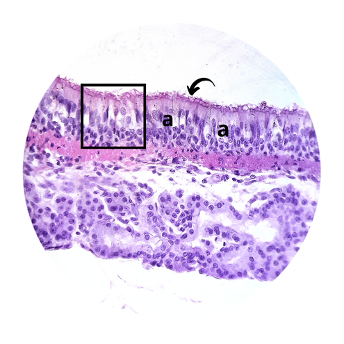 (a) epitélio pseudoestratificado cilíndrico ciliado