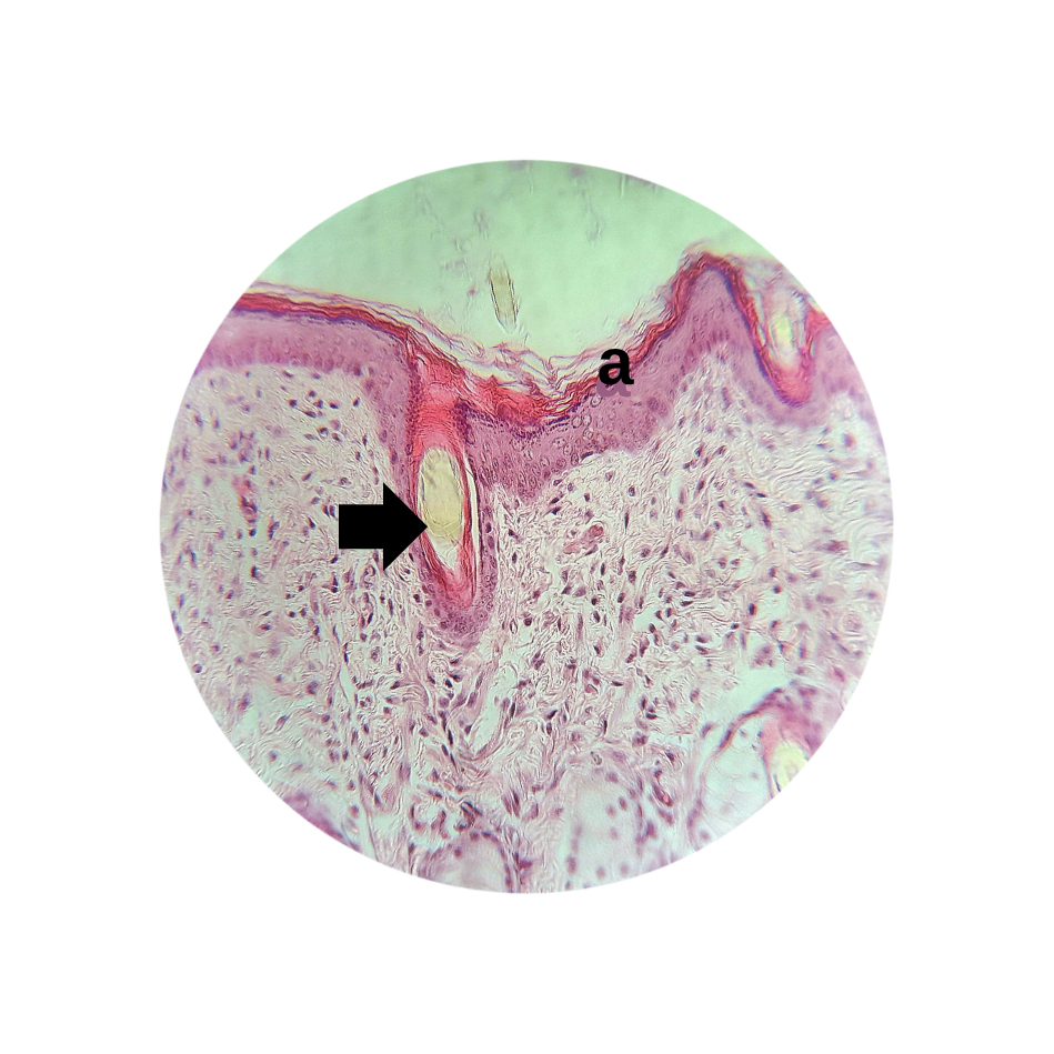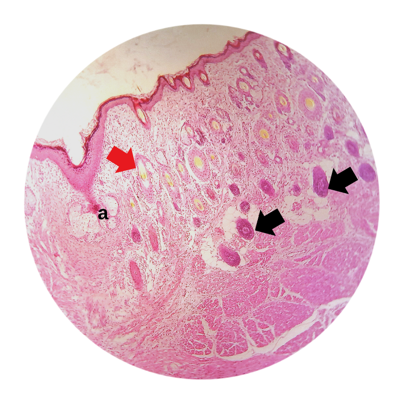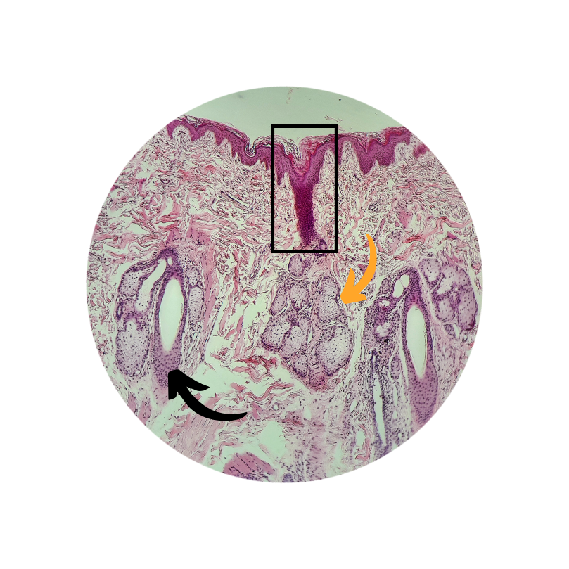 (seta preta) glândulas sudoríparas (glândulas apócrinas associadas ao folículo piloso)